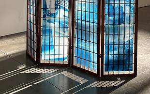The room divider symbolizes the physical distribution of the family, with each panel representing the role of the family member.